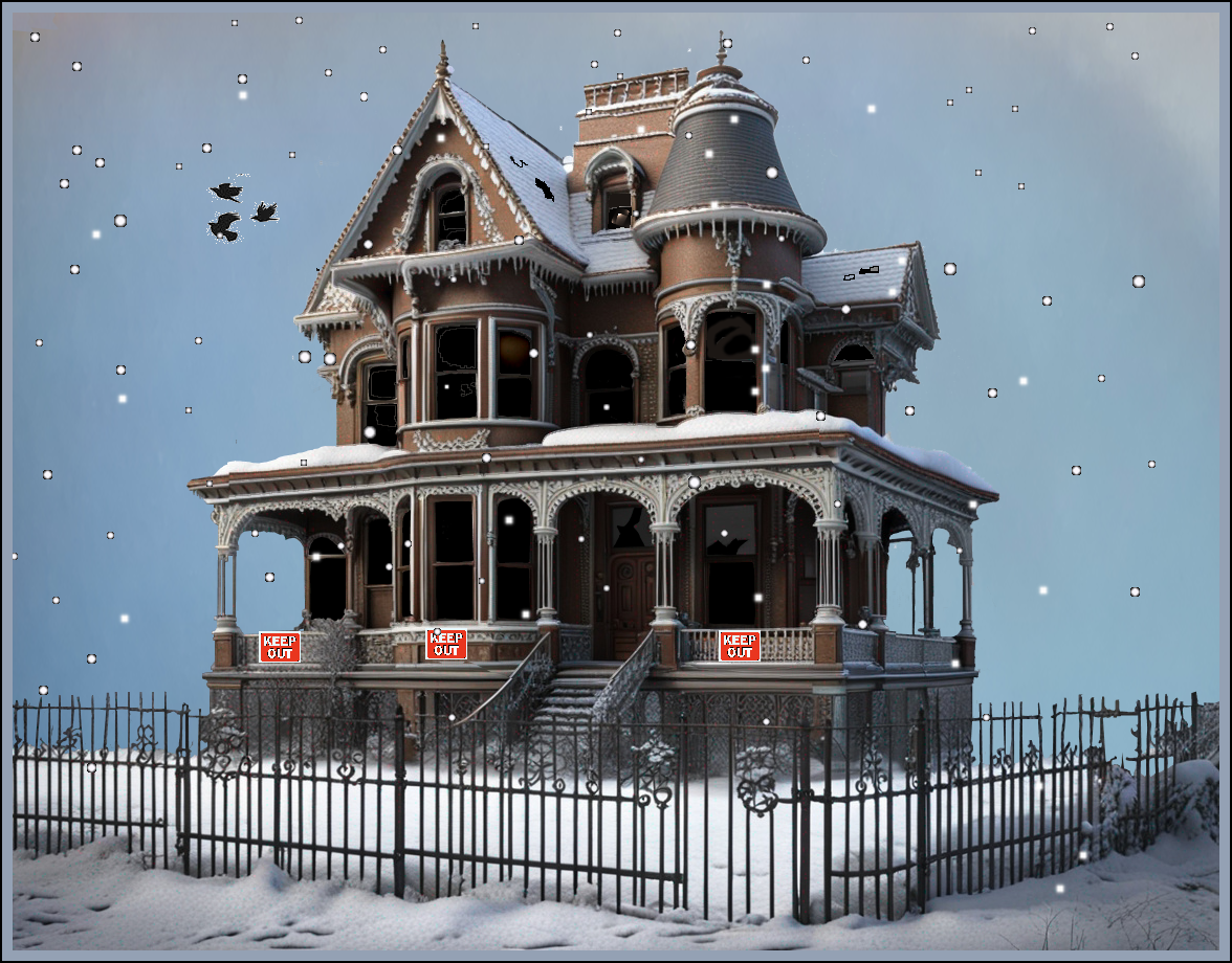 Suddenly, Janice stopped dead in her snow boots. Erin and Karma looked back at her, puzzled. “What are you doing?” Erin grabbed Jan’s coat to pull her along, but Janice remained frozen at the Empty House’s iron fence.