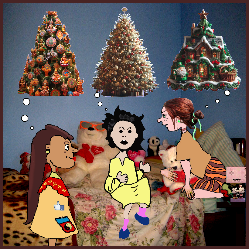 Cathy left the room, considering the whole affair concluded. But the three girls just watched her walk out, not even caring what Cathy thought. They sat quietly, each thinking hard about where they could find a tree, how to gather the decorations, and who could help. Karma suggested finding a tree in the woods and cutting it down. But how do you do that?