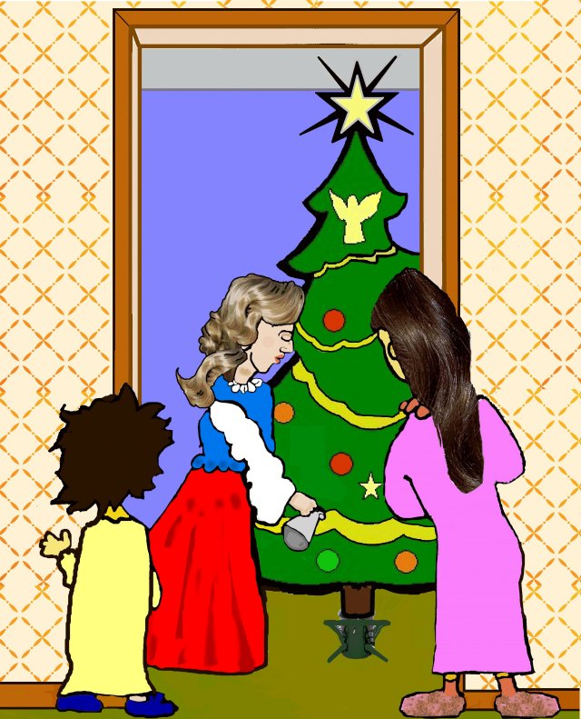 Chaque année, lors de la veille de Noël, les deux petites filles chantent la même histoire encore et encore, au point de se blottir en-dessous de leur couverture dans leur chambre. Quelle vision merveilleuse se doit être de voir le traineau du Père Noël avec ses quatre lumières colorés décorant le devant de son traineau et de ses rennes!