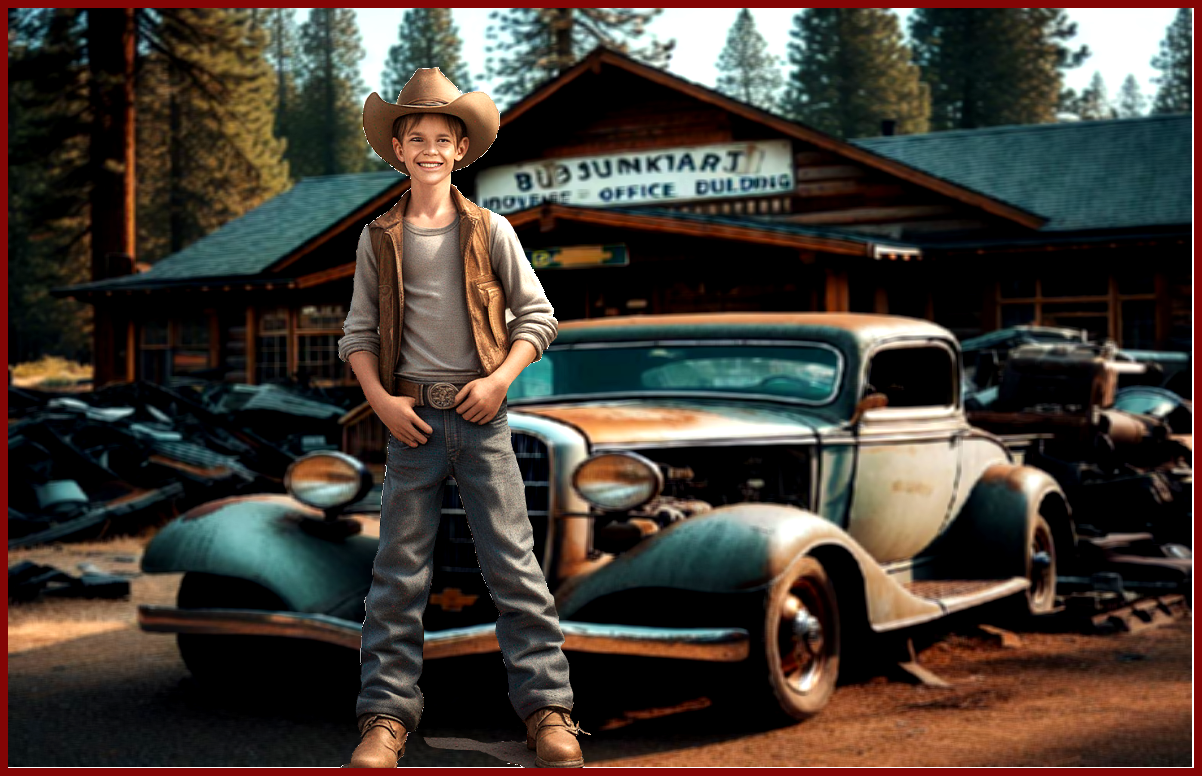Erin and Janice got totally lost when they walked into the messy and greasy junkyard. All kinds of cars were piled on top of one another they seemed to reach the sky. The dirty ground was completely soaked in oil with little puddles of brown water. The whole place stunk of oil and gasoline. Sometimes it got hard for them to walk around. Quiet too. You would think junkyards had big cranes to pick up the junk and growling machines with wide open mouths to swallow the junk, but they heard nothing. Finally, Erin called out for Jimmy. Janice joined in until, from out of nowhere out stepped Skinny Jimmy. “Do I hear girls in my junkyard?” The big kid stepped out of a pile of tires. Stepping over muddy puddles he stood before them and in front of a beat up junked car. He looked like a mighty giant to the little girls. Immediately Jimmy saw and recognized Erin from when he first met her at school. He talked with Doodles Trip when Erin and Janice came along and Doodles introduced Erin to Jimmy. “So what do you know? It’s, Erin,” He gave her a big grin. “And this is your little friend Janice, right? What brings you fine ladies to my junkyard?”