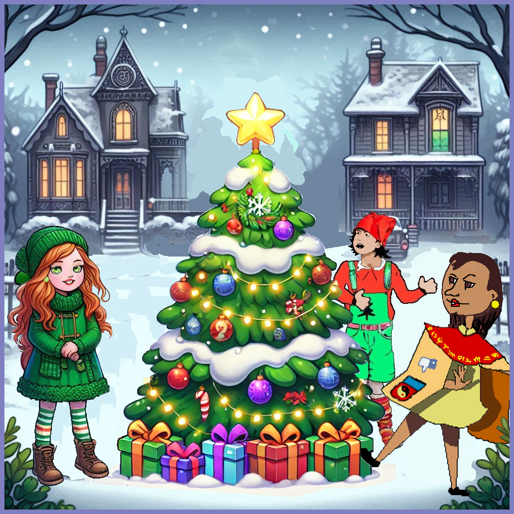 “Wait! I got it!” Janice cried out, breaking free from Erin’s grasp and moved back to the fence. She pointed to a small snow drift that rose halfway between the broken-down fence and the Empty House. “Right there!” she exclaimed. The other two girls squinted, trying to see what she was pointing at. “Put a Christmas tree right there! That would change everything!”